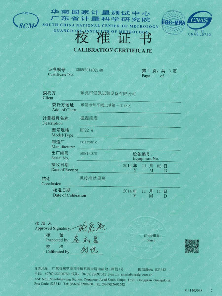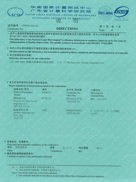 檢測(cè)儀表校準(zhǔn)證書(shū)