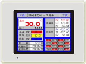 TEMI880P 韓國三元原裝進口 5.7寸TFT液晶屏 RS232通訊介面, 可選配USB存儲。 | 介面中英文可切換 120組,1200段, 每段99小時 全部循環(huán)999CYC 部分循環(huán)99 |