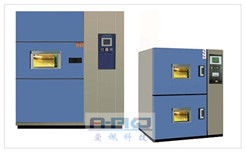 半導(dǎo)體電子器件冷熱沖擊試驗箱特別適用于半導(dǎo)體電子器件做溫度破壞測試,主要測試半導(dǎo)體電子器件材料結(jié)構(gòu)在瞬間下經(jīng)極高溫及極低溫的連續(xù)沖擊環(huán)境下所能忍受的程度,得以在最短時間內(nèi)檢測試樣因熱脹冷縮所引起的化學(xué)變化或物理傷害。本試驗箱根據(jù)試驗需求及測試標(biāo)準(zhǔn)分為三箱式和兩箱式,區(qū)別在于試驗方式和內(nèi)部結(jié)構(gòu)不同。三箱式分為蓄冷室,蓄熱室和試驗室,產(chǎn)品在測試時是放置在試驗室。兩箱式分為高溫室和低溫室,是通過電機帶動提籃運動來實現(xiàn)高低溫的切換,產(chǎn)品放在提籃里,是隨提籃一起移動的。