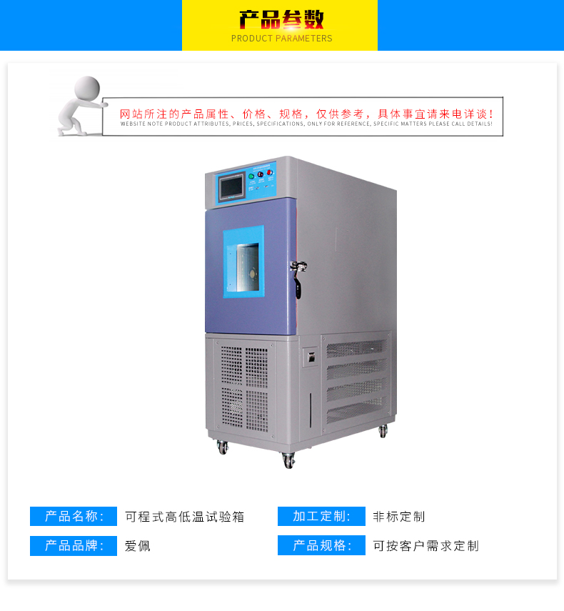 升溫、降溫、系統(tǒng)完全獨(dú)立可提高效率,降低測(cè)試成本,增長(zhǎng)壽命,減低故障率。技術(shù)參數(shù):溫度范圍:-70℃~ 150℃溫度波動(dòng)度:≤±0.5℃溫度均勻度:≤2℃型號(hào)及尺寸(W*H*Dmm):型 號(hào) 工作室尺寸有多個(gè)尺寸可選擇: 1000px×1250px×1000px;1250px×1500px×1250px;1250px×1875px×1500px;1500px×2125px×2000px;2500px×2500px×2000px;2500px×2500px×2500px;以上尺寸只是標(biāo)準(zhǔn)熱銷尺寸,東莞市愛(ài)佩試驗(yàn)設(shè)備有限公司還可以為大家提供非標(biāo)設(shè)計(jì)服務(wù),如有需求請(qǐng)聯(lián)系鐘18988712117。