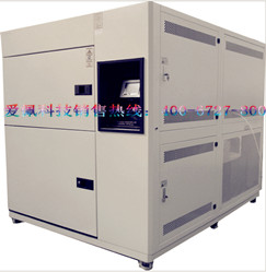 - 提籃式冷熱沖擊試驗(yàn)箱也叫兩箱式冷熱沖擊試驗(yàn)箱或者二箱式冷熱沖擊試驗(yàn)箱,它的結(jié)構(gòu)與三箱式冷熱沖擊試驗(yàn)箱的不同之處就是擺放測(cè)試物的區(qū)域是一個(gè)由不銹鋼做成的提籃,藍(lán)子內(nèi)分為兩層格層用于擺放產(chǎn)品。設(shè)備在做沖擊試驗(yàn)時(shí)通過(guò)氣缸拉伸提籃在冷溫區(qū)和熱溫區(qū)中間來(lái)回竄動(dòng)從而達(dá)到?jīng)_擊效果。當(dāng)用戶在做冷沖擊時(shí)提籃會(huì)被提到冷溫儲(chǔ)溫箱,當(dāng)用戶在做熱沖擊設(shè)定時(shí)提籃會(huì)被提到熱溫儲(chǔ)溫箱,當(dāng)然這些移動(dòng)工作是在10秒鐘之內(nèi)完成的,穩(wěn)定時(shí)間在3~5分鐘以內(nèi),完全能達(dá)到國(guó)家標(biāo)準(zhǔn)。(為了保證試驗(yàn)箱降溫速率和最低溫度的要求,本試驗(yàn)箱采用一套進(jìn)口德國(guó)半封閉壓縮機(jī)所組成的二元復(fù)疊式水冷制冷系統(tǒng)(需在室外安裝每小時(shí)冷卻水量為10噸的循環(huán)冷卻水塔,由愛(ài)佩提供)。復(fù)疊式制冷系統(tǒng)包含一個(gè)高溫制熱循環(huán)和一個(gè)低溫制冷循環(huán),其連接容器為蒸發(fā)冷凝器,蒸發(fā)冷凝器是也到能量傳遞的作用,將工作室內(nèi)熱能通過(guò)兩級(jí)制冷系統(tǒng)傳遞出去,實(shí)現(xiàn)降溫的目的。制冷系統(tǒng)的設(shè)計(jì)應(yīng)用能量調(diào)節(jié)技術(shù),一種行之有效的處理方式既能保證在制冷機(jī)組正常運(yùn)行的情況下又能對(duì)制冷系統(tǒng)的能耗及制冷量進(jìn)行有效的調(diào)節(jié),使制冷系統(tǒng)的運(yùn)行費(fèi)用和故障率下降到較為經(jīng)濟(jì)的狀