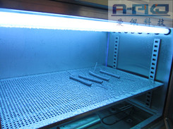 - 紫外耐老化實(shí)驗(yàn)箱光源采用8支額定功率為40W的美國進(jìn)口亞太拉斯品牌的紫外線熒光燈作發(fā)光源。紫外線熒光燈管,分布在機(jī)器的兩側(cè),每側(cè)各4支。有UVA-340和UVB-313光源供用戶選擇配置。此品牌的燈管能夠有效模擬現(xiàn)實(shí)環(huán)境中太陽光所發(fā)出的紫外光線供眾多工業(yè)產(chǎn)品做耐老化實(shí)驗(yàn)。